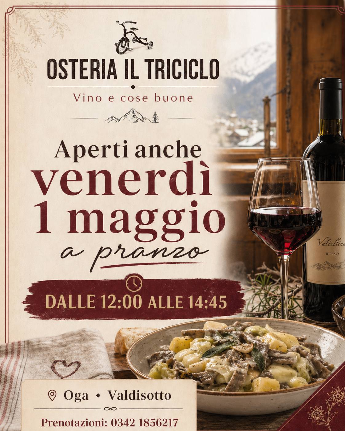 Mangiare è solo una parte dell’esperienza: facciamo del nostro meglio per accostare, alle proposte dello chef, i migliori vini valtellinesi. Tutto sempre condito dall’atmosfera genuina e informale che ci contraddistingue.